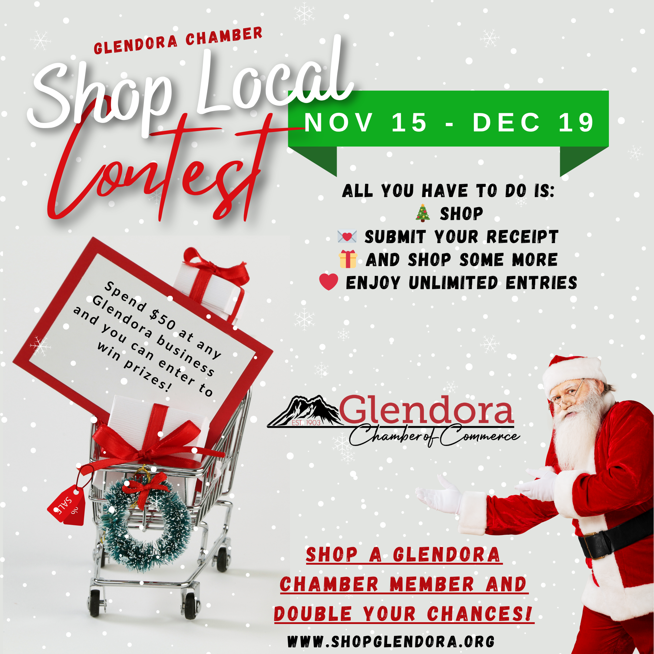 Enter Today! Enter Today! Shop Local Contest Entry Enter today for a chance to win prizes just for Shopping in Glendora! Enter as often as you like from November 15 - December 19! Name(Required) First Last Phone(Required)Email(Required) Upload proof of purchase here:(Required)Max. file size: 100 MB.